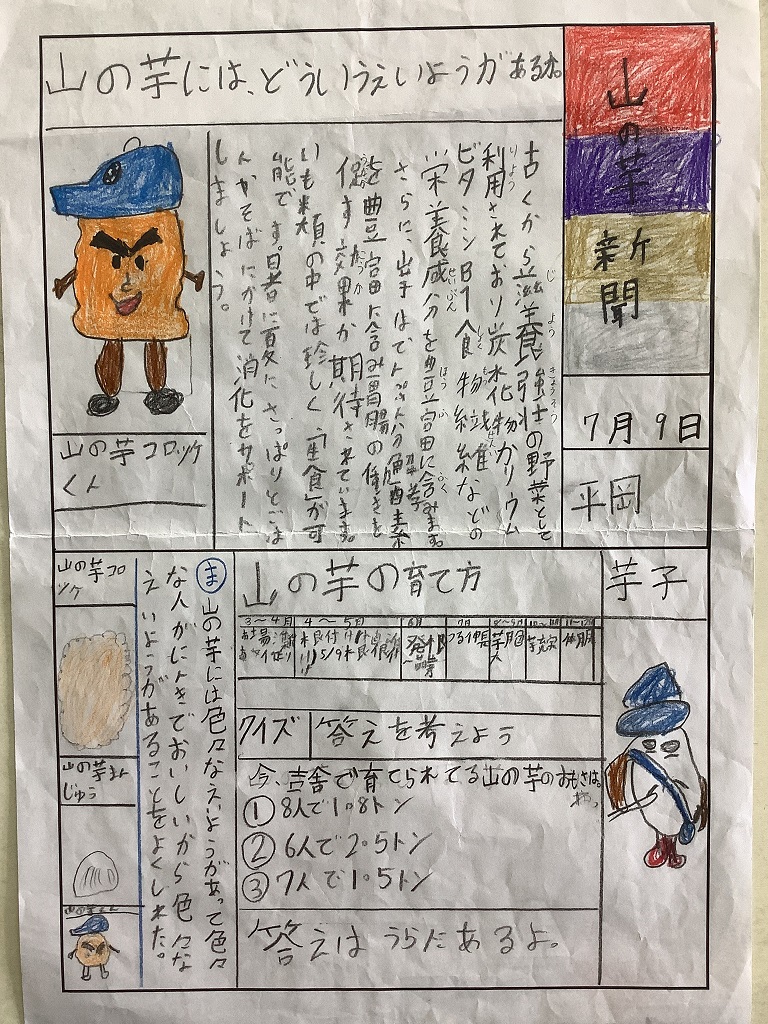 ホーム > 小学校 > 吉舎小学校 > 学校からのお知らせ > 3年生 総合的な学習の時間 > 3年生 山の芋新聞